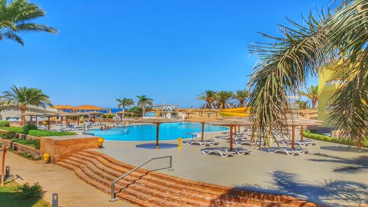 Palm beach is directly situated on the sandy Beach of the red sea and only 7 km north from Hurghada and 22 km south from El Gouna.